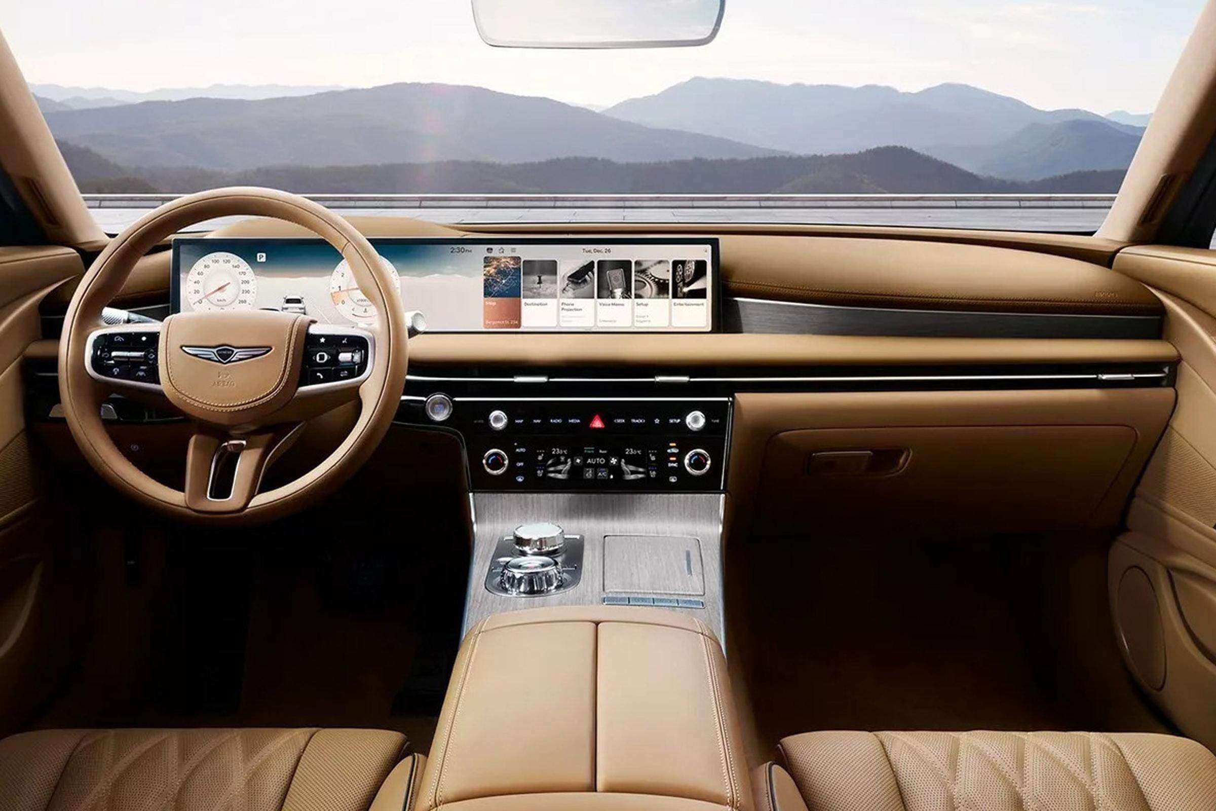内饰方面,新款捷尼赛思G80的最大亮点这是会采用上全新的27英寸OLED一体式显示屏,并同步配备上新造型的方向盘和触控式空调控制区,相较于现款在售的捷尼赛思G80而言,新车型明显会具备更加丰富的科技氛围和豪华氛围,更显新潮。