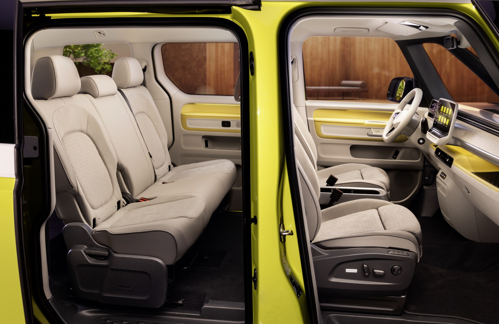 据悉,大众ID. Buzz标轴版采用的是双排5座布局;而大众ID. Buzz LWB版在轴距加长之后,增加了第三排座椅,提供6座、7座车型供选择,也就是说娇小的车身也能实现大空间,这确实是一款纯电MPV该有的样子。