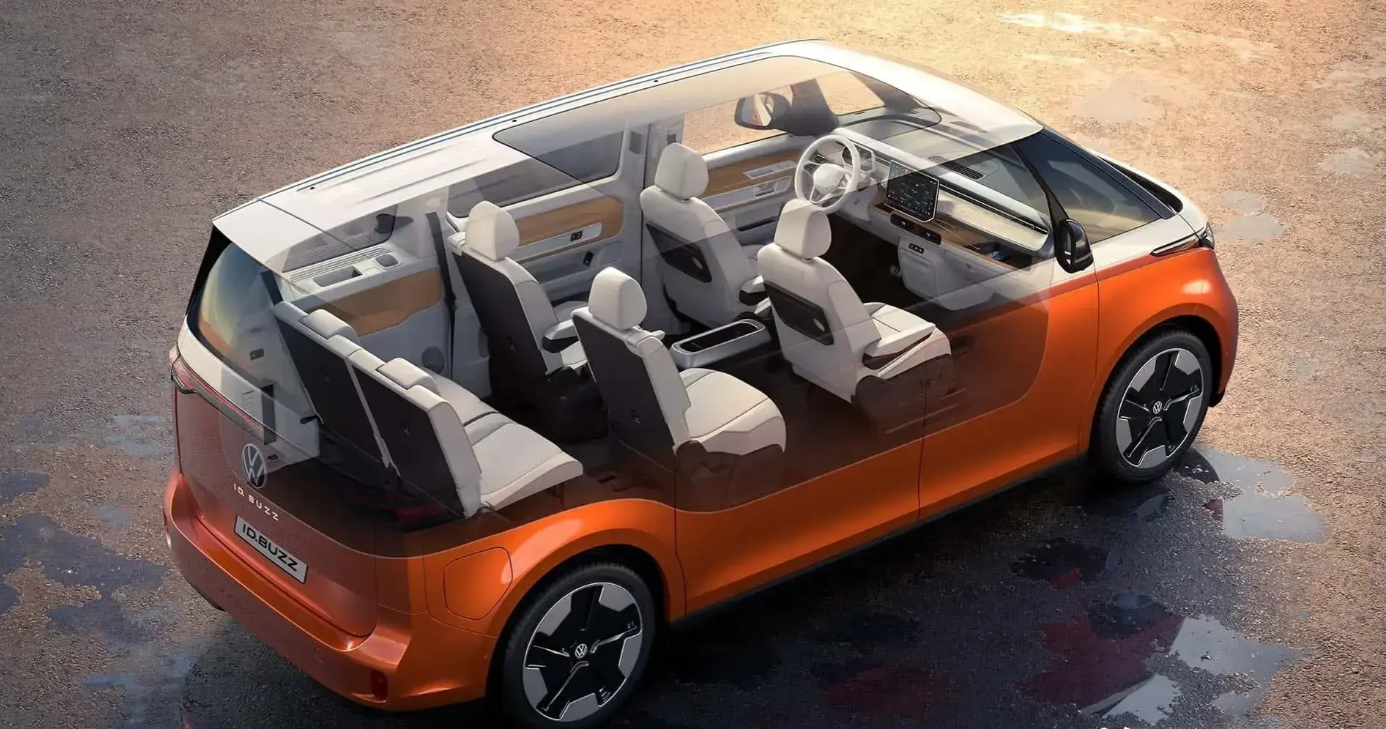 值得注意的是,大众ID.Buzz还提供标轴版和长轴版,其中,大众ID. Buzz LWB版(长轴版)去年已经发布,相比标轴版车型,轴距增加250毫米,不过从侧面看过去新车还是一台面包车的感觉。