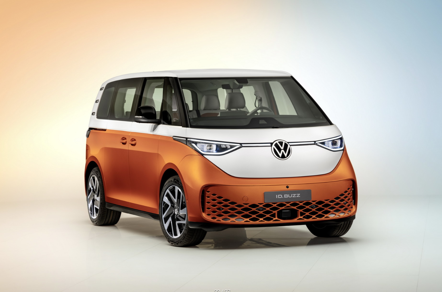 尽管新车采用了大众ID.家族的设计语言,但在配色上,大众ID.Buzz延续了很多经典大众T1的设计元素,例如分色车身、白色车顶以及较短的机盖和大LOGO等等元素,都能让你仿佛穿越到那个年代。