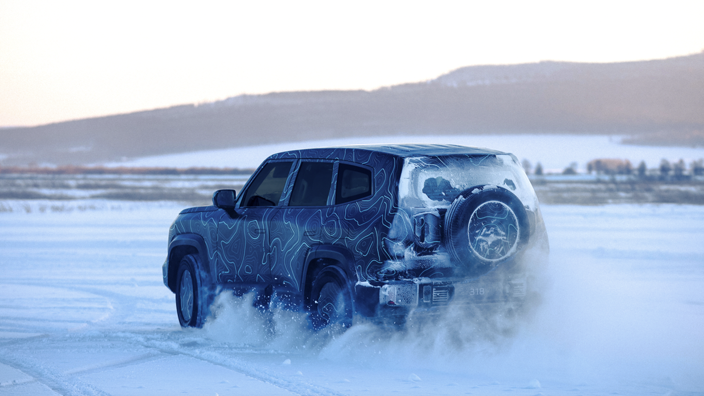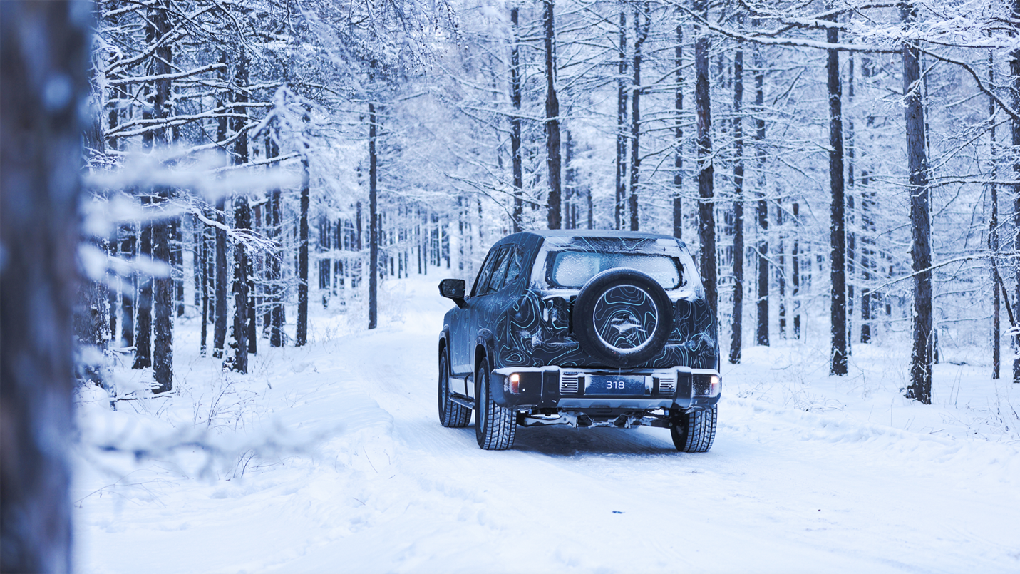 由于深蓝318本次曝光出来的谍照采用了高度伪装,整车被包裹得严严实实,因此我们也就只能看到它的大致轮廓。新车拥有非常硬朗平直的线条轮廓,四轮四角的设计结合整体向上提的前后保险杠以及不错的离地间隙,这也预示着它将会拥有不错的越野通过性。