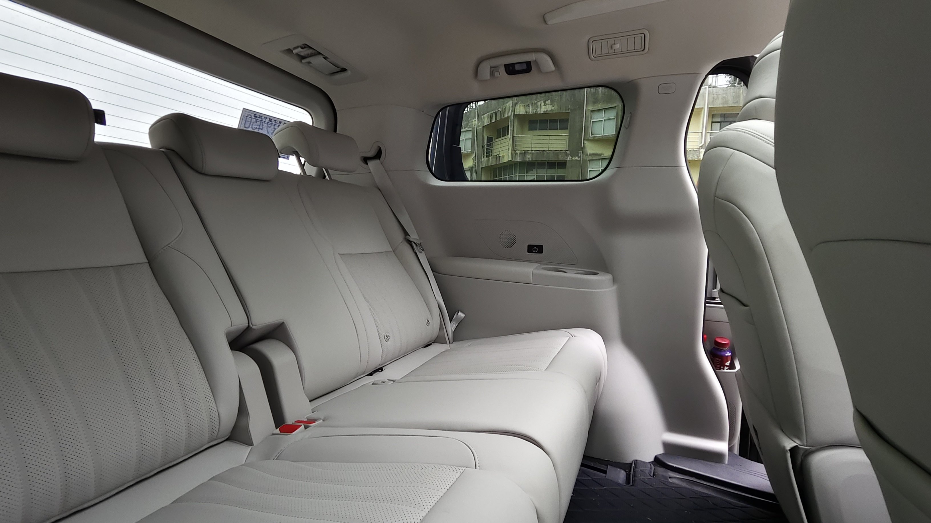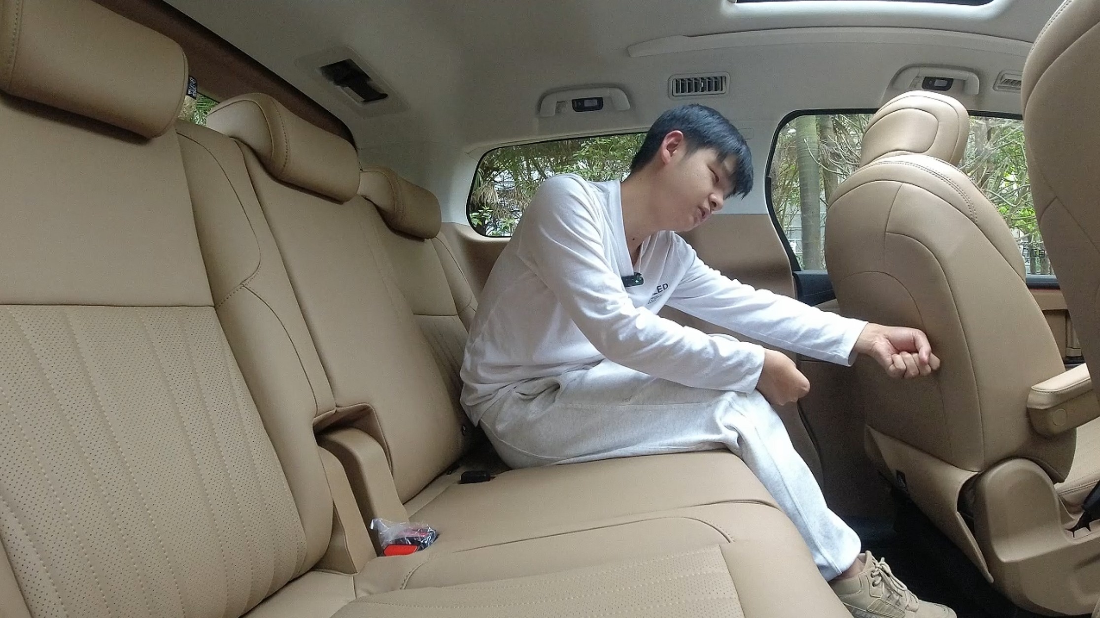 或许是因为车身长度和轴距的优势,教授在第二排保留了两拳的腿部纵向空间之后,它的第三排座椅还会有四拳的腿部纵向空间。同时,头部也有着两拳的空间富余,这在MPV当中都属于非常宽裕的一个范畴了。