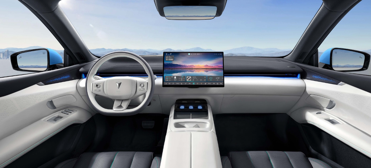 这还没完,它还有两块屏幕在中控台的左右两端,那是电子后视镜的屏幕。是的,12.98万的价格,它居然给到了电子后视镜!作为中型纯电轿车,它的续航中规中矩,59.22度电池,CLTC520公里续航,不算很出彩但也不差,就是这个级别纯电车的标准水平。4830*1845*1503mm的身材,2731mm的轴距也是标准的中型轿车尺寸。
