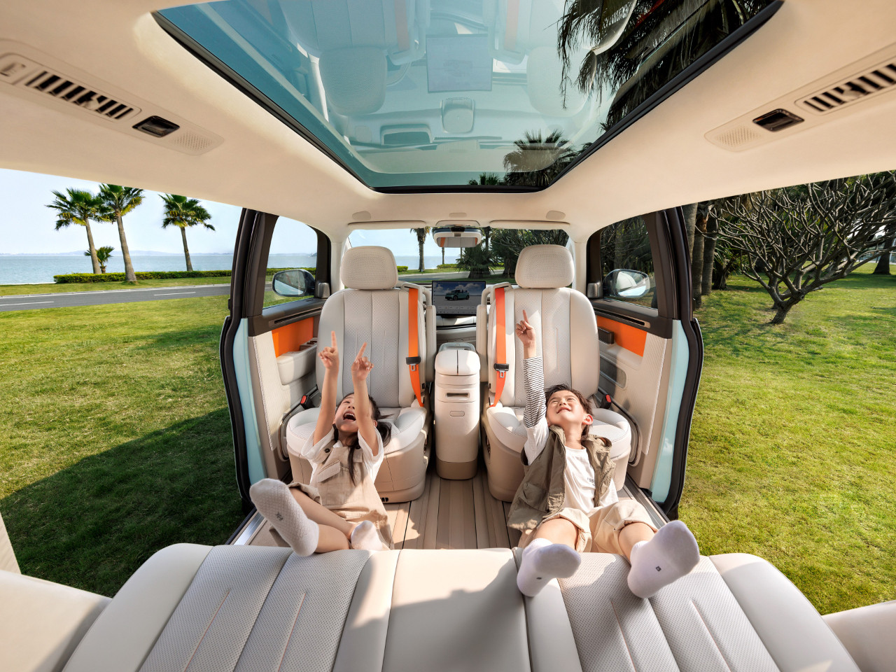 也就是说,前门是侧滑门,往车头位置拉,后门和其他MPV一样。在两边的门拉开之后,就会形成一个大的离谱的进出车身的空间,大家看官图就能体会得到这个空间有多离谱。说白了,极氪MIX是一台把空间这两个字发挥得淋漓尽致的车,它,就是当下最强的“空间魔法师”!不过要注意的是,前门侧滑门要选装,标配前门还是平开门。