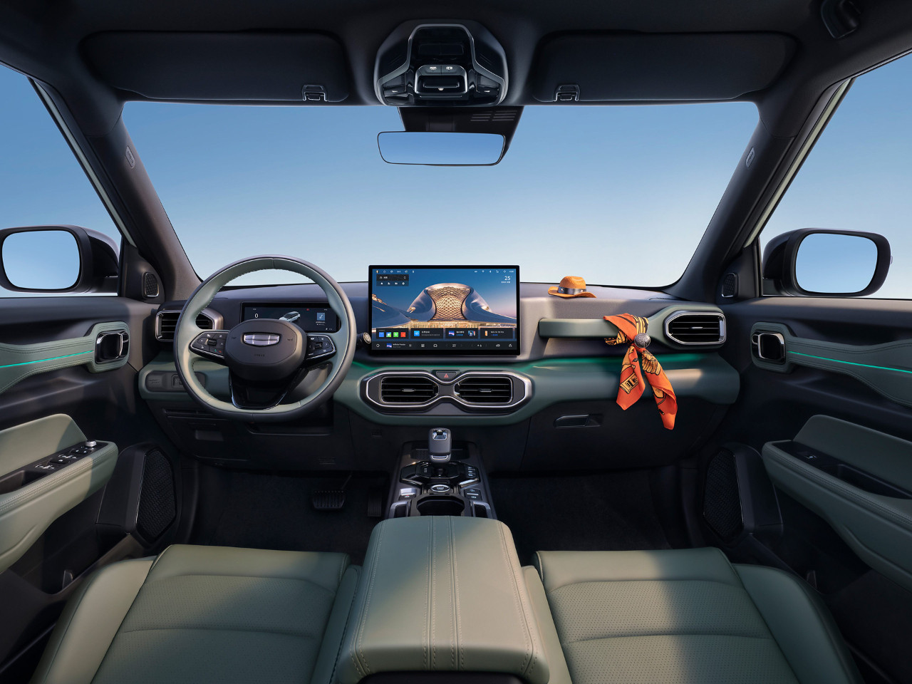 我们在小标题其实就已经直接点明了牛仔的身份,它其实就是吉利ICON的后继车型。这是一款小型燃油SUV,车身尺寸4442*1860*1770mm,轴距2640mm。其实牛仔这个尺寸已经介于小型SUV和紧凑型SUV之间了,所以如果用紧凑型SUV的标准去衡量它,那么它算是紧凑型里面比较小的,但如果用小型车去看它,那它算是尺寸相当大的小型SUV了。
