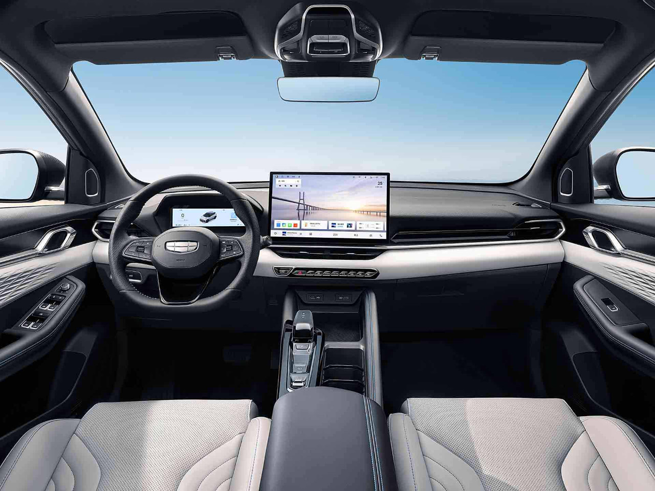 内饰也改了不少东西。首先方向盘换了。原来的方向盘多少还能看出一点“便宜车”的感觉,但缤越L新换的这个方向盘就显然高级多了,已经很有吉利旗下更贵的车子的感觉了。另外车机屏幕的尺寸变大了很多,现在有14.6英寸了。换挡杆也从以前相对传统的样式,换成了和吉利其他车型相似的“水晶档把”。甚至连空调出风口之类的设计都变了。