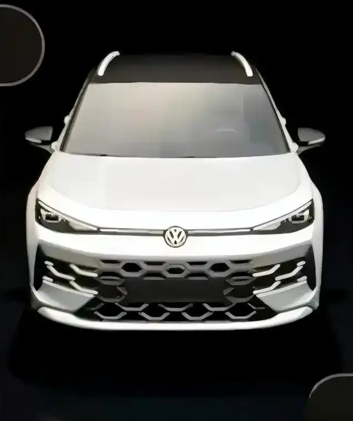 从前脸看,新车整个前灯组的造型和大众现行的ID系列纯电车十分相似,同样的头灯组+贯穿式日间行车灯,中间的LOGO看不清能不能发光,我们猜测大概率是可以的。前灯组下方的前中网尺寸巨大,和现售的任何一款大众新车都不一样,而且留意前中网左右两侧,大家会发现一些疑似可发光的白色结构,我们猜测那东西应该是LED行车灯或是转向灯,不管是哪种,新一代探歌这种前脸设计,在过去的大众车系中是没有先例的。