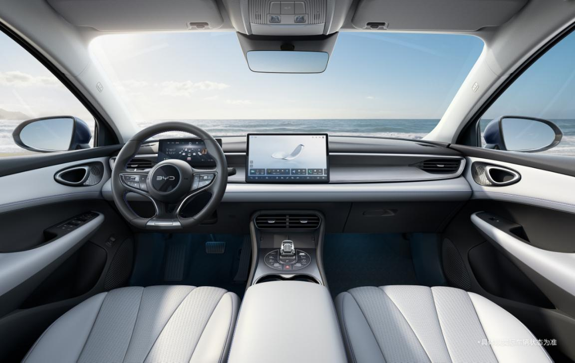 新车基于海洋美学设计理念打造,定位全民智能家轿,中高配款型配备比亚迪全栈自研的天神之眼 C - 高阶智驾三目版(DiPilot 100)和智能座舱高阶版-DiLink 100,支持多项高阶智能驾驶辅助和智能交互功能,为用户带来更安全、便捷、舒适的出行体验。
