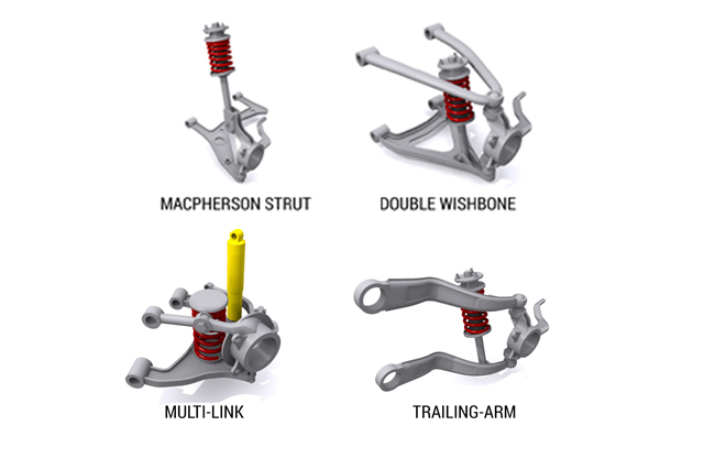 麦弗逊、双叉臂、双连杆以及多连杆四种