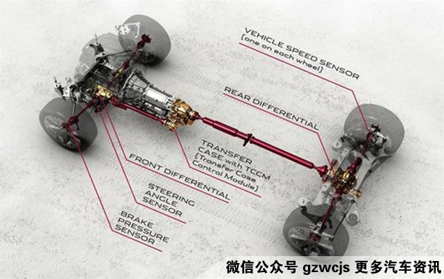 该系统具有中央多片式离合器、电子限滑差速锁、上坡起步辅助、陡坡缓降和偏航瞬间控制等智能系统,所具备的3种控制模式可以手动选择,可控性高,2WD模式下前轮有100%动力,AUTO模式下后轮最多可获得50%的动力,而LOCK模式下可以使得后轮所分配的动力持续保持在50%左右。