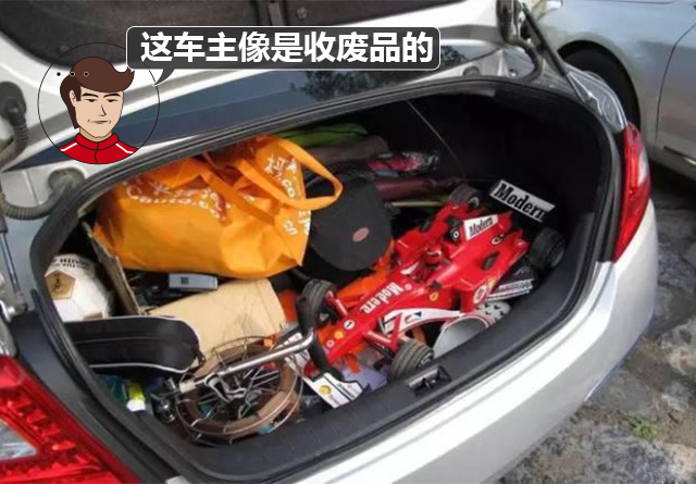 留意销量排行榜的朋友都会知道,国内市场最热销的几辆车,都是B级车以下级别的(不包括B级车)。轴距有限,意味着不能够肆意的设计车内的空间布局,往往要牺牲后备箱的空间来提升驾乘空间,一般A级车能有个450L容量的后备箱已经算不错的了。然而很多有车的朋友都当自己的后备箱是百宝箱,什么杂物都往里边塞,就像这样: