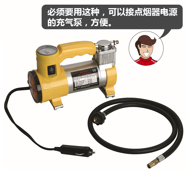 教授要说的是这种可以外接电源的打气泵,如果在路上发生胎压不正常的话,可以拿出打气泵,接上汽车上的电源,就可以给轮胎充气了。也不至于为了这一点小事到处找维修店,但是要注意充气的时候一定要拉好手刹,并找一个安全的地点。