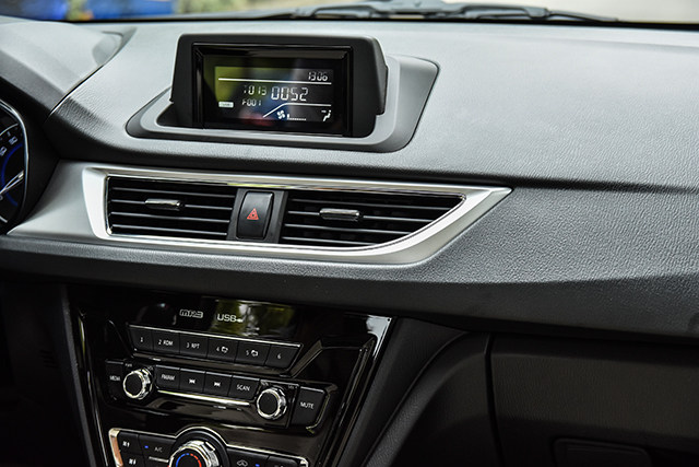 悬浮式中控屏幕给内饰加分不少,但可惜的是低配是一个单色屏幕。内饰整体做工比较优秀,接缝均匀没有毛刺,按钮紧实旋钮阻尼适中,处于这个价位的优秀水平。