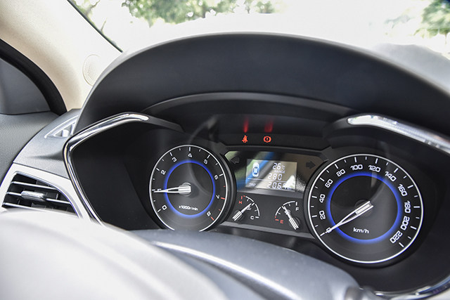 仪表盘简约易读,但是显示屏可供显示信息较少,只提供平均油耗、温度、续航里程等信息。