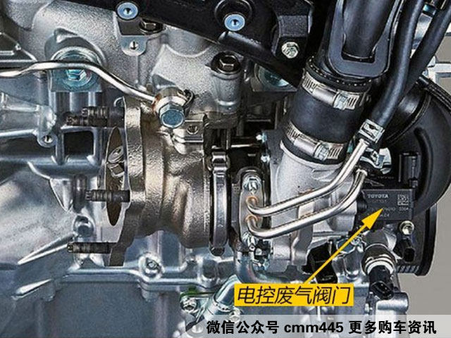 丰田1.2T发动机采用了低惯量单涡管涡轮增压器,为让尽可能多的废气加压到发动机中,丰田运用了计算机辅助工程来优化涡轮叶片和壳体,从而达到更好的燃油经济性。在涡轮增压器的压气机一侧还配有电控废气阀门,可有效提高发动机的动力响应,减少发动机在换挡时的动力中断。