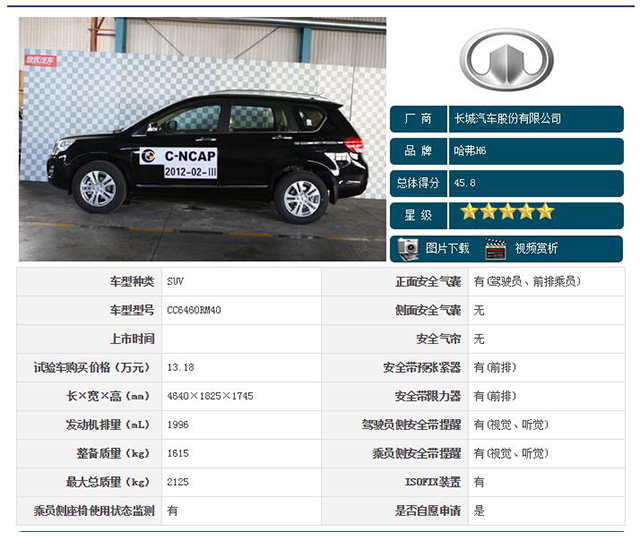 在C-NCAP的碰撞测试里,哈弗H6的总体得分为45.8分,5星评价。虽然评分没有传祺GS4跟博越高,但是成绩仍然值得表扬。因为C-NCAP买来的测试车,并没有侧面安全气囊跟安全气帘。原因…不知道是不是因为C-NCA的经费紧张。说回点子上,在缺乏一定安全配置的情况下,哈弗H6依然能够取得45.8分的碰撞成绩,从一定程度上来说,哈弗H6车身框架、车身溃缩设计方面还是有一定底子的。大家一窝蜂买哈弗H6,还是有原因的。
