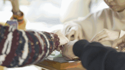 除了良好的手势之外,更重要的是音乐和氛围,找上一点绿叶,让朋友拿着,然后在眼前轻轻地挥动。