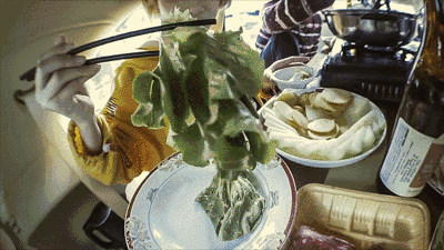 夹起最爱的肥牛,你喂我一口,我喂你一口,多么甜蜜的景象。