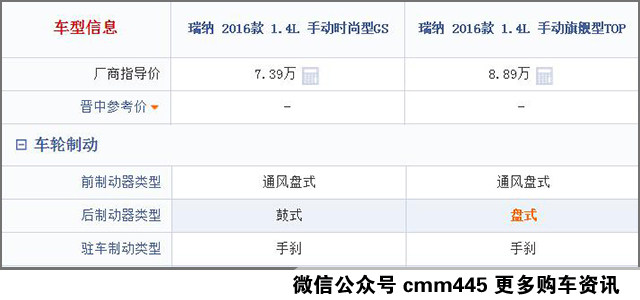 那为什么同款车不同型号之间的后轮刹车形式不一样呢?那就涉及到价格这一敏感话题了。鼓式制动器结构简单,制造成本更低,价格也会便宜。就拿现代瑞纳这款车举个例子,在8.89万以上的车型才配备了盘式制动,而采用鼓式制动的车型只要7.39万起,虽然其中的配置不止这些,但是却很好的拉低入门车型售价区间。