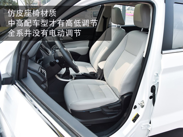 同样的预算,不选择精品小型SUV而选择尺寸更大的紧凑型SUV,很大部分原因是车内空间的坐姿问题。幻速S5的低配车型座椅并没有高低调节,电动调节就不能奢侈了。没有腰部和肩部的支撑,虽然空间够大,但长期开下来想必也是够累的,仿皮的座椅材质还说得过去,至少不是织物座椅….