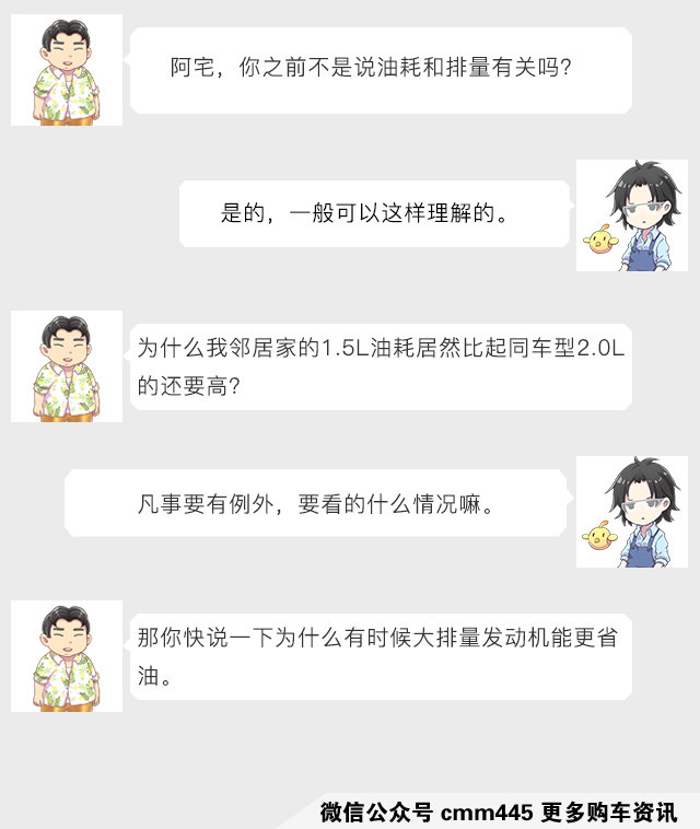 以上说的都是指发动机动力“供不应求”的情况,也就是我们平常所说的“小马拉大车”。这个时候发动机像是打了鸡血一样,按照以上的逻辑确实油耗是会更高,尤其是经常跑高速的情况,所以对于某些车型还是多花一点钱使用大排量发动机更好。一般城市使用,动力够用的情况下还是小排量会稍微省油一点。