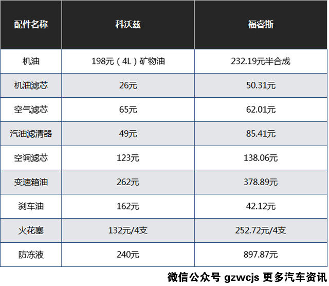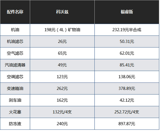 新车下地都要遵循三包政策,同为入门级紧凑车的它们不会有太大的区别。咋一看,似乎科沃兹的配件价钱便宜不少,但事实却是福睿斯的后期使用成本更低。到底是什么原因导致这样的差别呢,请听教授细细道来。