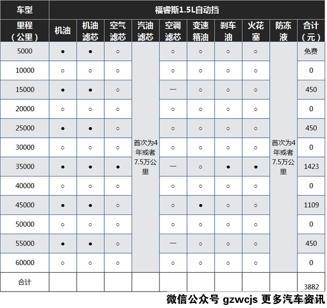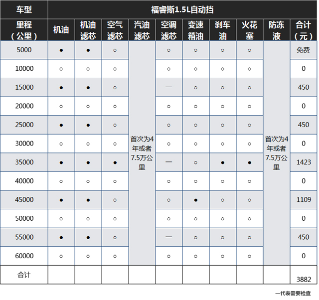 福睿斯的首保为5000KM,但跟很多厂商一样是免费的,而且它最大的优势是每隔1万公里才保养一次;因此整体压缩下来的使用成本会更低。在实际保养当中,厂家给福睿斯提供的标准保养套餐为450元,可谓是相当划算。以三年保修期6万公里计算年均保养费用却是低至1294元。这样的数据已经能跟一些日系车媲美了。假如说你还认为美系车耗油,那真的OUT了。