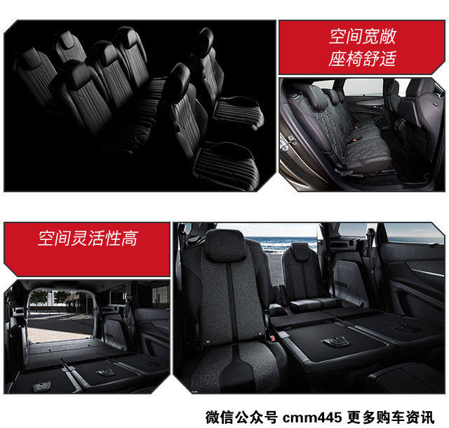 标致5008的“5+2”灵活座椅组合,让车内空间可根据车主生活需要进行调节。