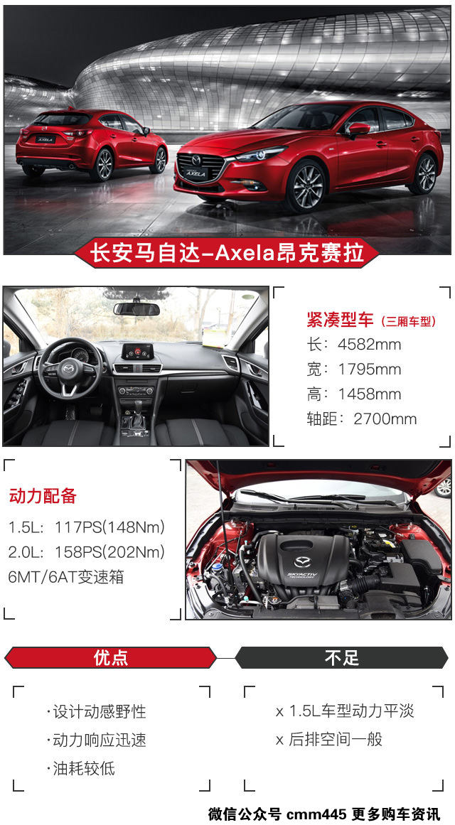 今天提到的三款车型中,设计各有特色。操控性能最好的当属马自达昂克赛拉!但是它与日产蓝鸟一样,舒适性一般般。而标致308的底盘调校富有质感,更善于化解震动。如果您喜欢它们的话,那么这三款车型都是值得推荐的!