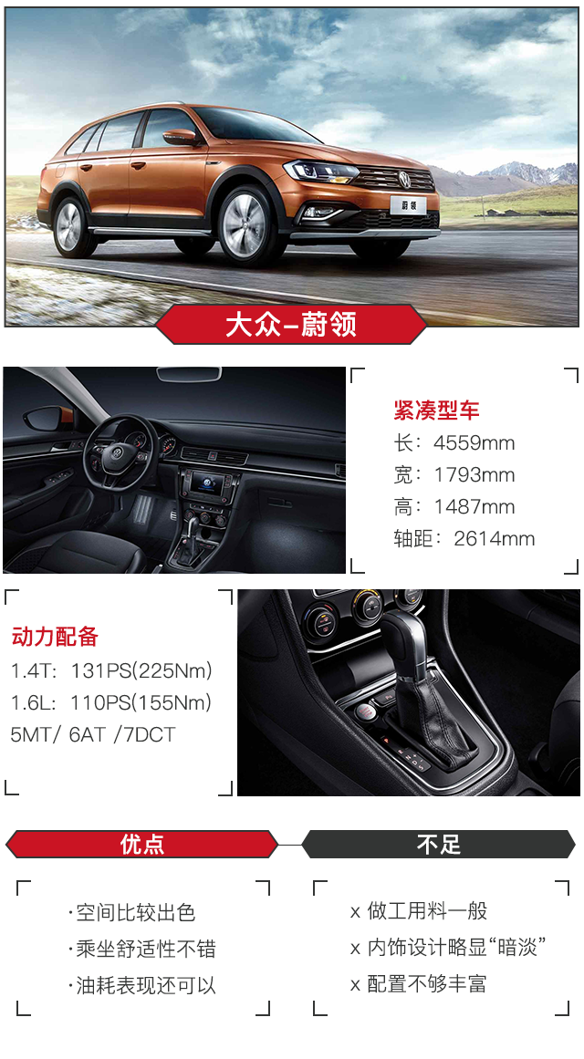 一汽大众蔚领几乎可以看成是宝来的两厢版,但又有一些不同,比宝来能装,通过性也比宝来好,作为一款跨界旅行车,蔚领略带野性的外观设计、更大的装载空间和比轿车更出众的通过能力都是其优势。