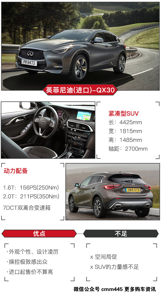 有一款进口车与合资国产的车出于同平台,而且进口车型的起售价比合资国产的更便宜,这款车说的就是英菲尼迪QX30与奔驰GLA这俩表兄弟。