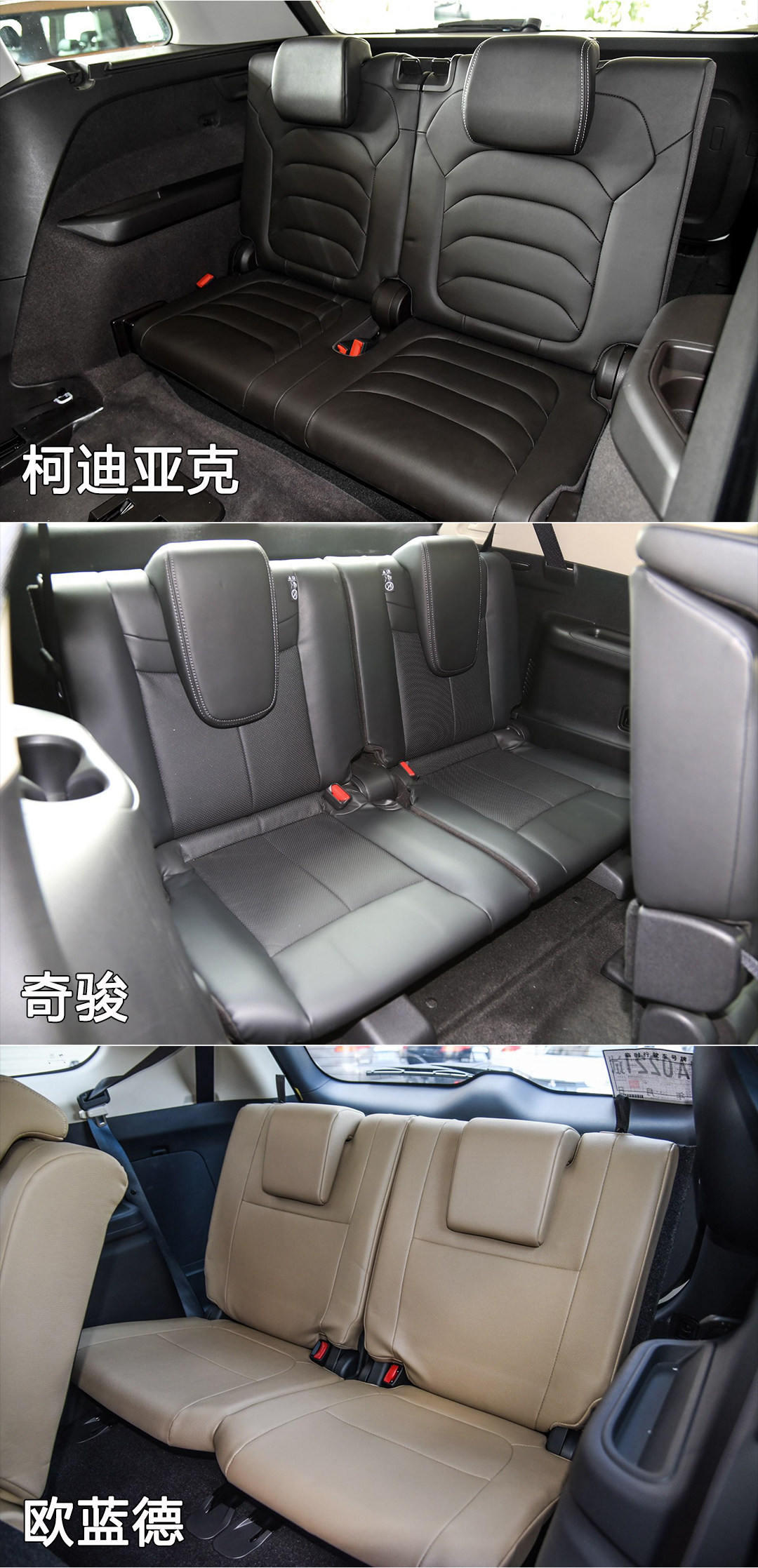 奇骏有非常运动化造型的平底方向盘,柯迪亚克有强调设计感的仪表盘和上下分层的手套箱,欧蓝德则是平平淡淡,说好听点就是强调实用性,中规中矩,说难听点就是没有地方能够吸引到大家的关注。