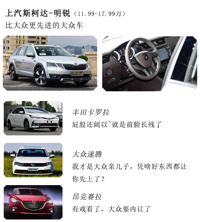 斯柯达和大众微妙的关系,让这个来自捷克的小兄弟总能够比大众更快投放新车型,当上汽还在六年磨一剑靠着蔚领大谈情怀,出自MQB的明锐早已推出更先进的旅行版车型。