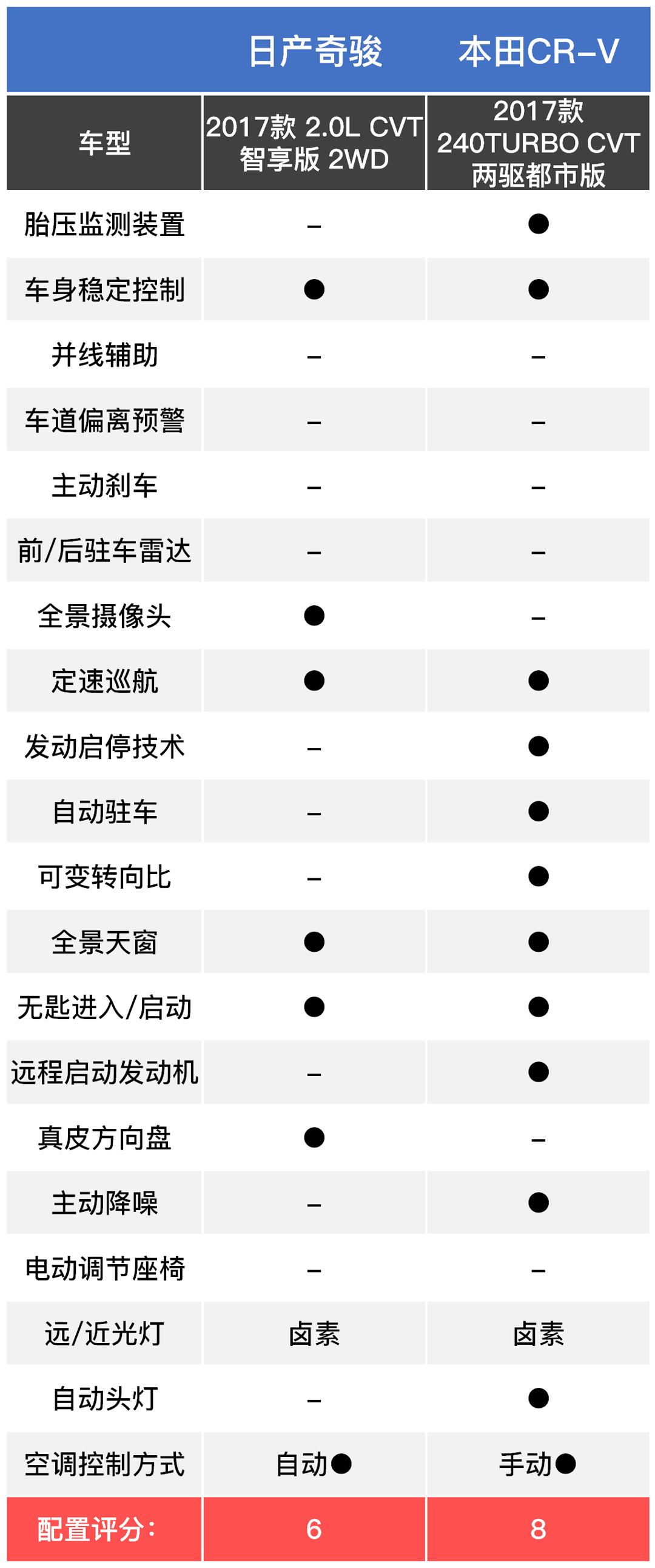 购车预算是固定不变的,车型的选择是多样化的,所以最后筛选出的两台车想必都是价格相近,今天就以市场定位相同、指导价相近的日产奇骏和本田CR-V为例子,教教大家如何对比两款车型!
