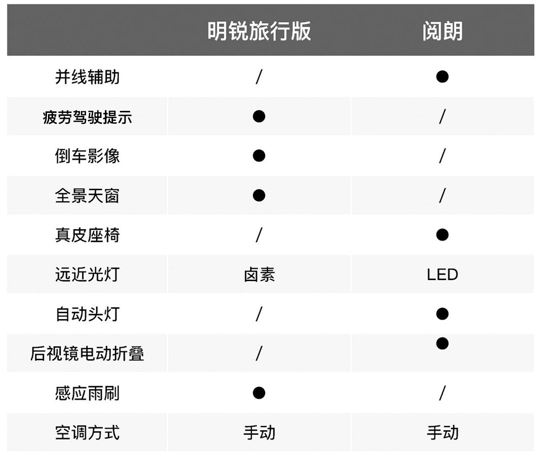 考虑到明锐旅行版推出时间更早,终端市场存在优惠,而阅朗刚刚上市势必没有优惠,此次我们找来了明锐旅行版1.2T的顶配车型(15.49万)与阅朗的1.3T乞丐版(13.69万)进行配置对比。
