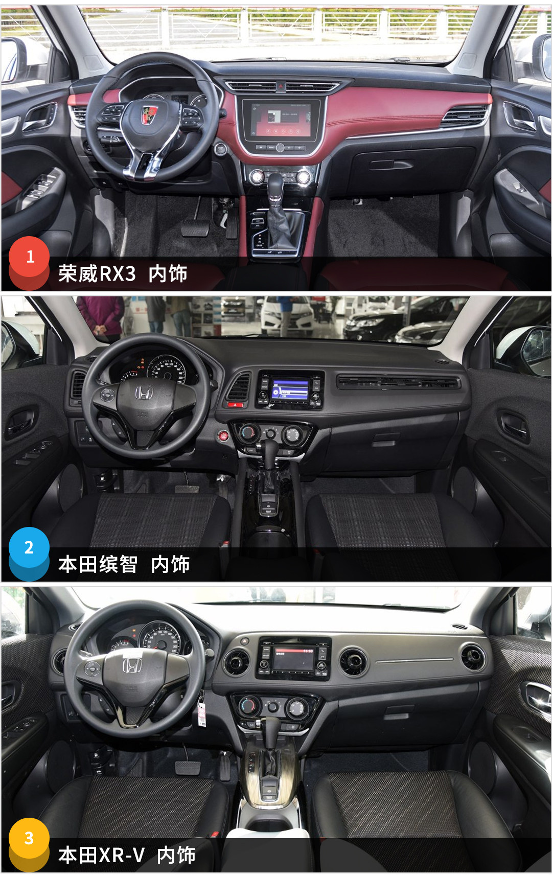 至于哪款更好,今天就来对比一下,教授选取了荣威RX3 1.6L CVT互联网智享版(以下简称荣威RX3)、缤智1.5L CVT两驱科技精英型(以下简称缤智)以及本田XR-V 1.5L LXi CVT经典版(以下简称XR-V)这三款匹配了CVT无级变速箱的车型,看下哪款更值得入手。