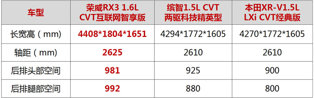 毕竟荣威RX3是紧凑型的SUV,相比同为小型SUV的缤智和XR-V,优势还是很明显的,车身尺寸和轴距方面均远超缤智和XR-V。
