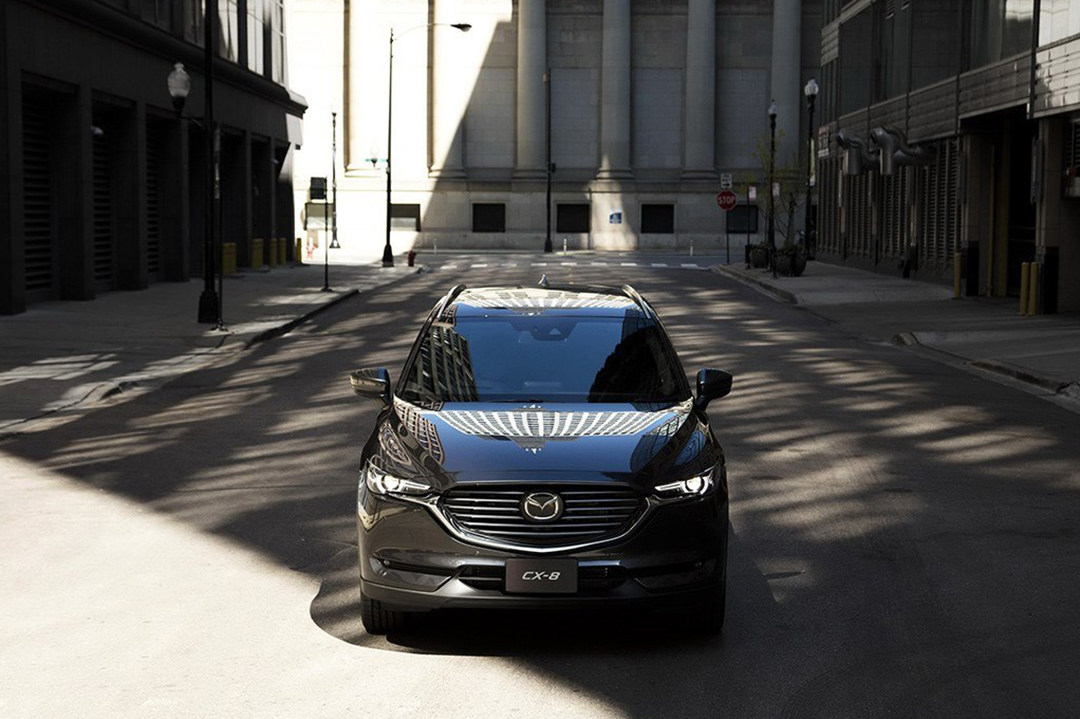 CX-8车身尺寸达到了4900*1840*1730mm,轴距更是达到了2930mm这样夸张的参数,所以它看起来非常高大威猛。而作为CX-5的长轴距版本,它外观和CX-5有着高度的相似,一样使用了魂动家族式设计,盾型进气格栅比起兄弟要更大,而尾部则是多了一条镀铬装饰条,连接两端和CX-5相似的尾灯。