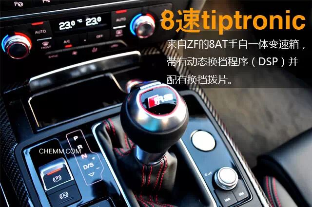 RS7上的这台V8双涡轮发动机还具气缸按需运行技术,在部分负荷工况下,系统会停止2、3、5、8汽缸的工作,剩下四个气缸继续工作,而切换的时间只有一秒钟的百分之几,快到你感觉不出来,配合发动机启停技术,对燃油经济性有一定帮助(大约可节省5%燃油)。