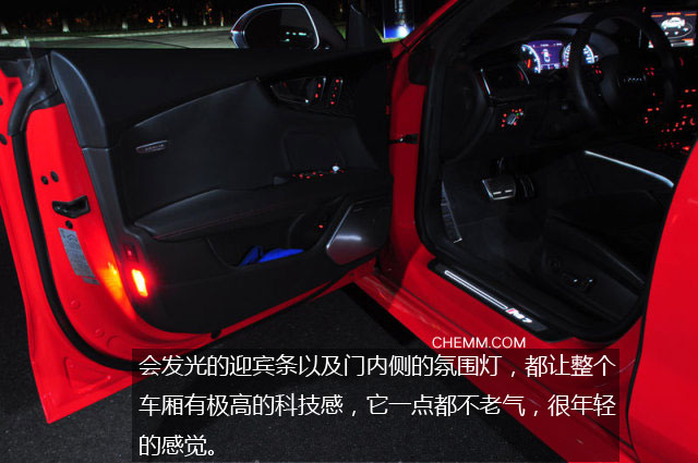 再说说内饰吧,布局和A7完全一致,但是RS的配置是武装到牙齿的,8英寸屏幕比宝马和奔驰设计都更为合理,因为它是可以一键伸缩的;B&O音响的低音系统随着启动会自然升起,那种感觉确实逼格很高;而会发光的迎宾条以及门内侧的氛围灯,都让整个车厢有极高的科技感,它一点都不老气,很年轻的感觉。