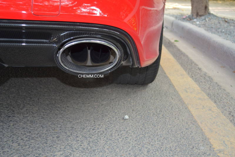 RS7的排气虽然从表面看是双边双出,但当你弯下腰仔细观察,会发现它实际上是双边四出,它采用了可变阀门排气设计,当D档时一侧排气阀门会关闭,而切换到S档或动态模式时,阀门会打开,此时声浪更加激情,排气也更为顺畅。这种设计保证了足够的低扭输出,同时又能在性能模式下释放声浪和排气,是目前最为理想的一种排气设定。