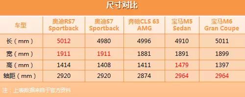 上表是RS7车身尺寸与同级车的一些对比,教授发现RS7比普通S7还要更长一些,高度也要更高一些,这倒是比较意外,一般跑车和性能车都离地面更近,而RS7却并不用担心刮底问题,它的离地间隙和普通轿车没有太大区别,大大提升实用性。