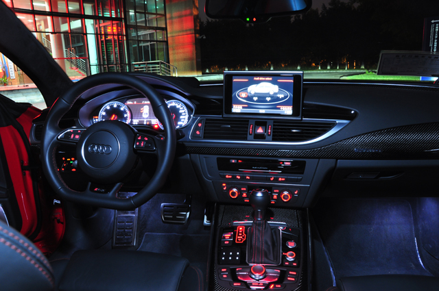 同时,标准版RS7的音响为BOSE,如果你想换成评测中的这个B&O的话,需要多加8万块,而我们这台测试车的蜂窝红色缝线的座椅也需要额外加8万8千块,在个人看来不如选择标准的座椅,应该会更舒适和显档次一些。另外,标配的RS7是20寸的轮毂,如果你想换成测试车这种21寸轮毂,也需要另外加钱,所以,你看到的这部车,实际上价值已经接近200万了。