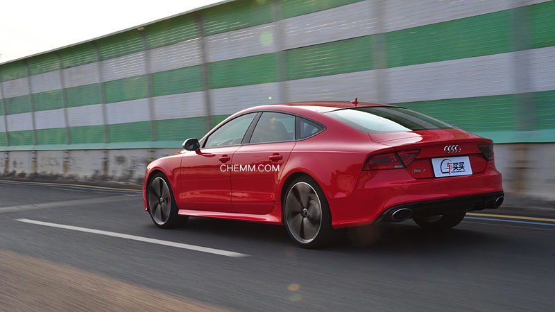 买RS7的人,多数不是极端的飙车分子,他们很注重车子的乘坐空间,毕竟车还是要拿来用的。乘坐空间得到保证,舒适度也起码要能接受才行,我们测试的这台RS7选装了扁平率为30的轮胎,如此薄的胎壁必然会颠簸一些,但是在D档以及舒适模式下,RS7的乘坐舒适性依然在可以接受的范围内,跑高速时很稳,与普通德系轿车很接近。