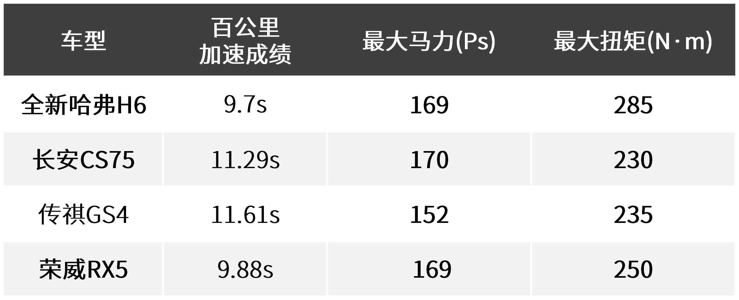 全新哈弗H6强劲的发动机并不只是赢在参数上,在经过我们实测的百公里加速成绩中,全新哈弗H6以9.7秒的成绩打败了同级的其他热门竞品。其中,长安CS75与传祺GS4同样搭载着1.5T+6AT的动力总成。虽然6AT传动平顺但是毕竟传动效率没有双离合变速器干脆直接。