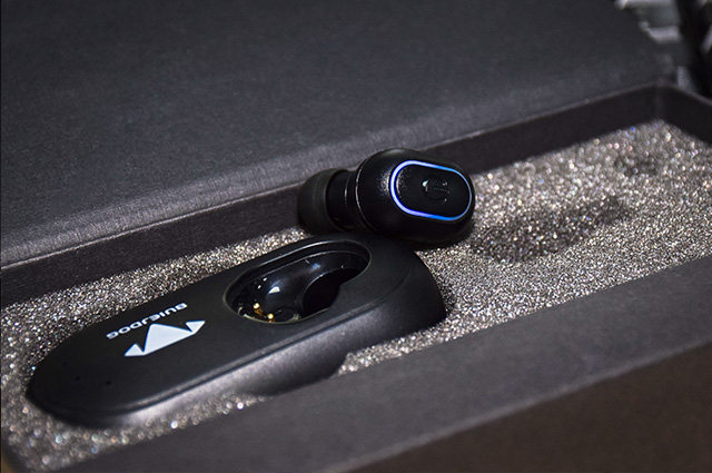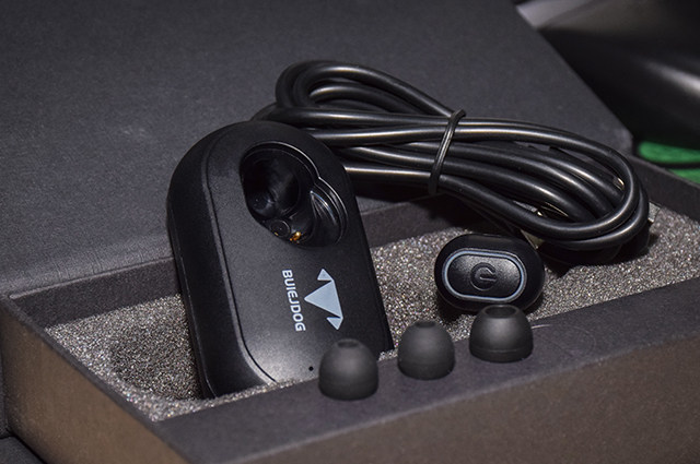 首先映入眼帘的是其全家福照,囊括了一个太阳能充电底座、一条备用充电线、一个蓝牙耳机以及几个耳塞。其中配备了S M L三款不同尺寸的耳塞,更好的适用于不同的人群,非常贴心的小设计。