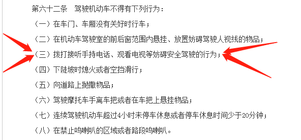 在《中华人民共和国道路交通安全法实施条例》中,有这样一条规定:“驾驶机动车不得有下列行为:拨打接听手持电话的行为”,违者罚款200元,扣2分。