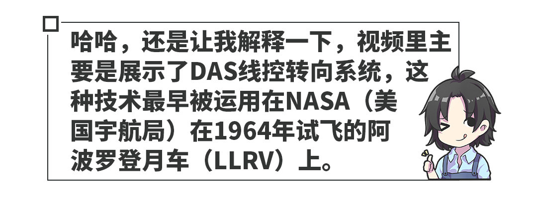 但是由于前轮在正常状态下与方向盘没有直接的机械连接,所以当车辆行驶在不平路面时,前轮受到的阻力丝毫不会反馈到方向盘上,这样避免了驾驶过程中方向盘不必要的振动,从而营造出更轻松的驾驶氛围。所以在视频中放在方向盘上的陀螺仪才如此稳定。
