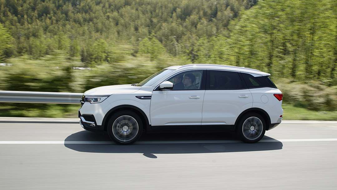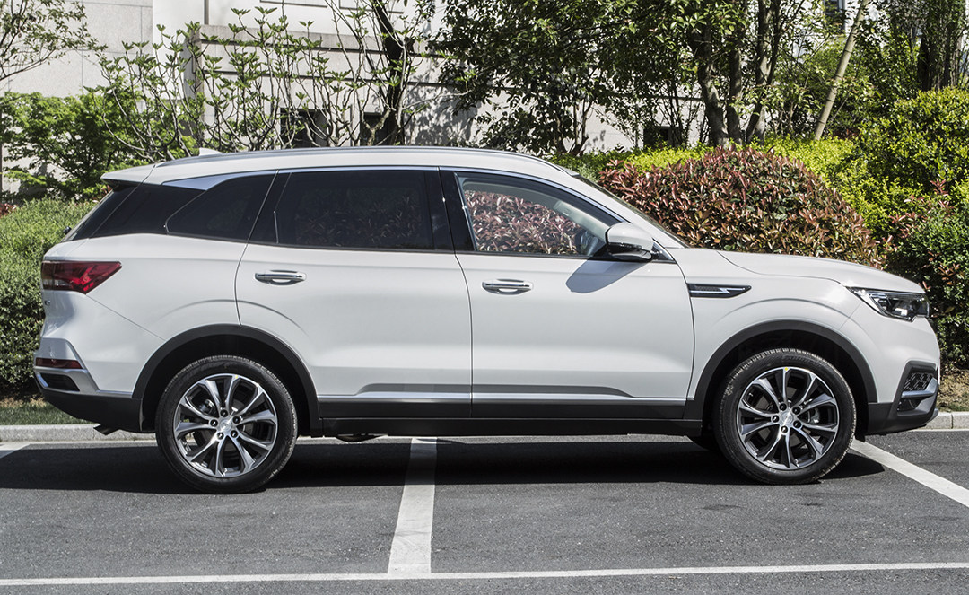 侧身线条勾勒清晰,折痕明显,显然是设计师为凸显硬朗气息刻意而为。飘逸的悬浮式车顶设计拉长了车身纵向视觉高度,看着更为挺拔。翼子板处的Z字标识与“Zotye”品牌logo相呼应,增添了几分原创的印记同时也提高了辨识度。