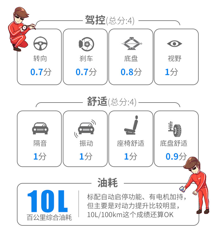 实测百公里加速时间为9.8秒,百公里刹停距离为42.5米,这个成绩并不算出色,加速时间距离官方的8.2秒有一定的距离,主要是因为测试当天气温非常炎热,而且车重达2吨之多。